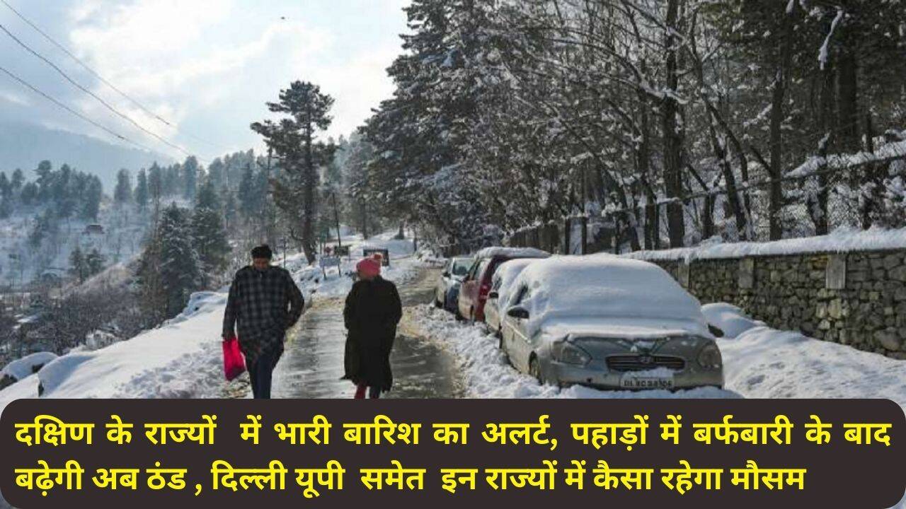 Weather Update:दक्षिण के राज्यों में भारी बारिश का अलर्ट, पहाड़ों में बर्फबारी के बाद बढ़ेगी अब ठंड , दिल्ली यूपी समेत इन राज्यों में कैसा रहेगा मौसम