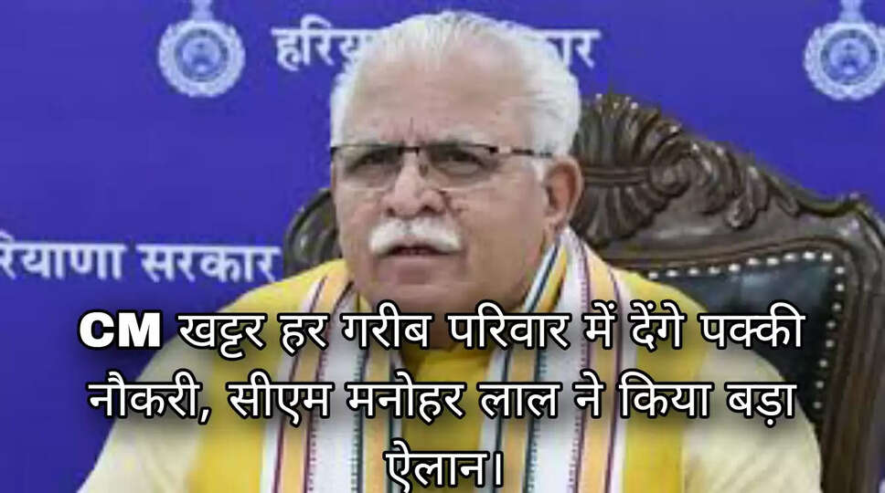 CM खट्टर हर गरीब परिवार में देंगे पक्की नौकरी, सीएम मनोहर लाल ने किया बड़ा ऐलान।