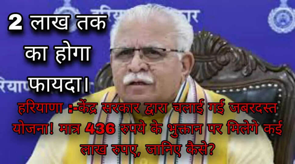 हरियाणा :-केंद्र सरकार द्वारा चलाई गई जबरदस्त योजना! मात्र 436 रुपये के भुक्तान पर मिलेगे कई लाख रुपए, जानिए कैसे?