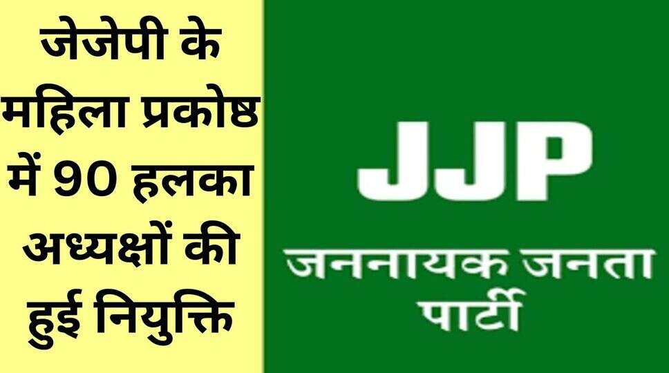 चंडीगढ़, 9 सितंबर। जननायक जनता पार्टी ने अपने संगठन की पुनर्गठन प्रक्रिया के तहत 90 महिला पदाधिकारियों की नियुक्ति की है। जेजेपी राष्ट्रीय अध्यक्ष डॉ अजय सिंह चौटाला, विधायक नैना चौटाला, डिप्टी सीएम दुष्यंत चौटाला, पार्टी प्रदेश अध्यक्ष सरदार निशान सिंह, राष्ट्रीय संगठन सचिव राजेंद्र लितानी, महिला प्रकोष्ठ की प्रदेश अध्यक्ष शीला भ्याण ने पार्टी के वरिष्ठ नेताओं के साथ विचार-विमर्श के बाद महिला प्रकोष्ठ में 90 हलका अध्यक्षों की नियुक्तियों की सूची जारी की है।