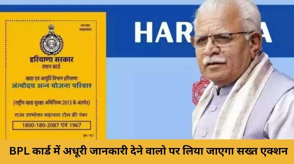 BPL Ration Card: हरियाणा के मुख्यमंत्री ने कही बड़ी बात, BPL कार्ड में अधूरी जानकारी देने वालो पर लिया जाएगा सख्त एक्शन, जानिए पूरी डिटेल्स