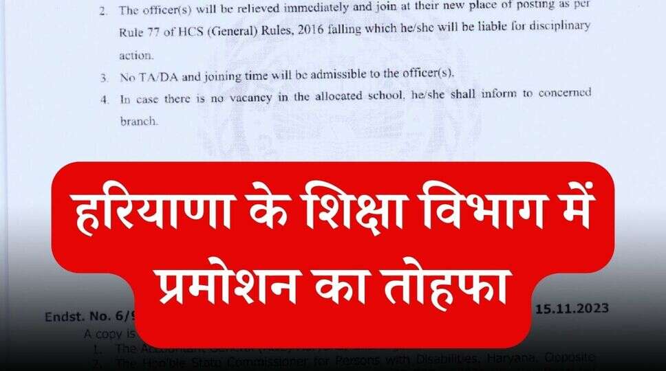 Haryana : हरियाणा के शिक्षा विभाग में प्रमोशन का तोहफा, प्रिंसीपल को सरकार ने दी बड़ी राहत, देखें पूरी लिस्ट