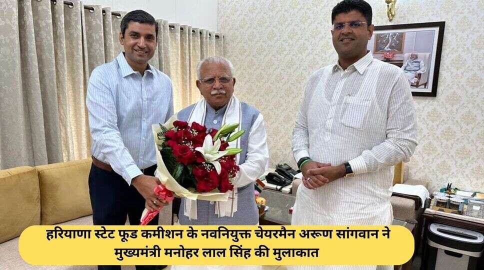 हरियाणा स्टेट फूड कमीशन के नवनियुक्त चेयरमैन अरूण सांगवान ने मुख्यमंत्री मनोहर लाल सिंह की मुलाकात