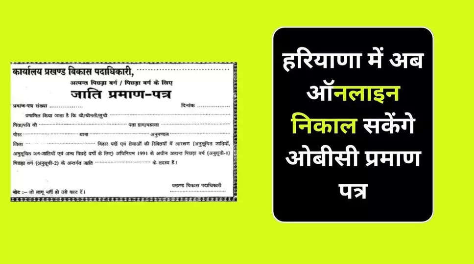 OBC Certificate: हरियाणा में अब ऑनलाइन निकाल सकेंगे ओबीसी प्रमाण पत्र, सरकार ने प्रो-एक्टिव ओबीसी प्रमाण पत्र की शुरुआत