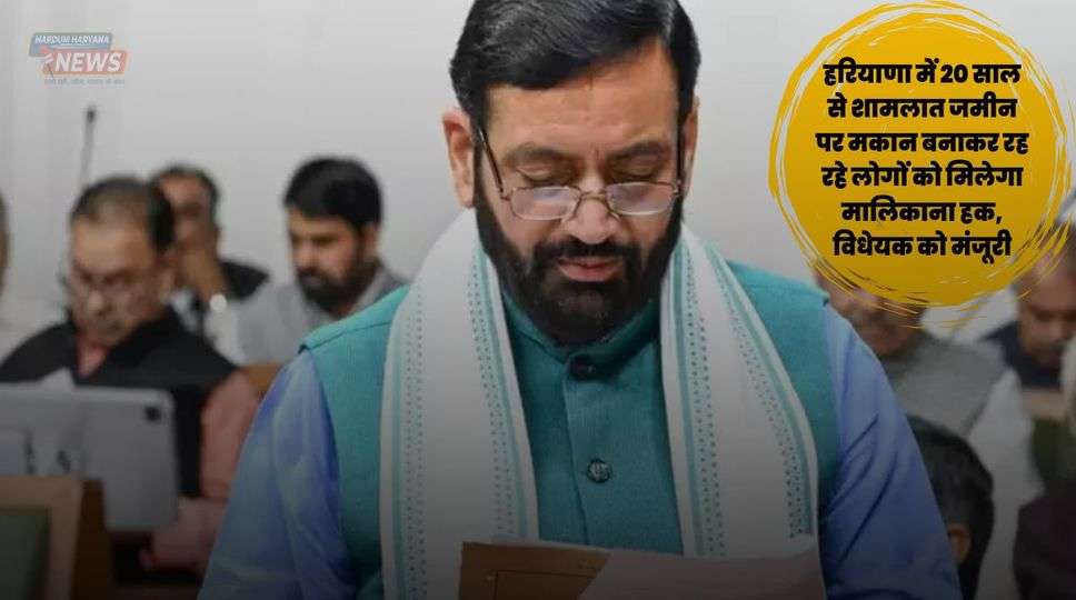 हरियाणा में 20 साल से शामलात जमीन पर मकान बनाकर रह रहे लोगों को मिलेगा मालिकाना हक, विधेयक को मंजूरी