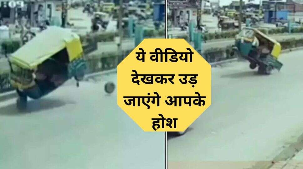 हैरान करने वाले सीसीटीवी फुटेज की शुरुआत से देखेंगे कि एक ऑटो सामने की तरफ से आता हुआ दिखाई दिया। मगर ऑटो इससे पहले थोड़ी दूरी तय करता डराने वाला नजारा दिखाई दिया। आप देखेंगे कि अचानक ऑटो का अगला पहिया हवा में उड़ गया। अगले ही सेकंड इसके पिछले पहिए भी हवा में उड़ गए। देखकर चौंक जाएंगे कि इसके पहिए वाहन से अलग होकर दूर जा गिरे। ऑटो का ऐसा खतरनाक एक्सीडेंट देखकर आसपास मौजूद लोग तुरंत मदद के लिए पहुंचे।