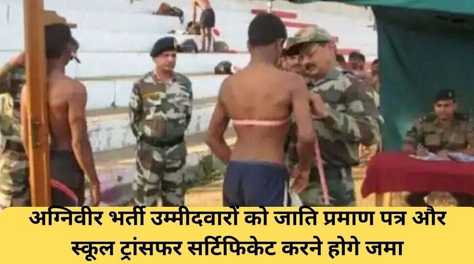 अग्निवीर भर्ती उम्मीदवारों को जाति प्रमाण पत्र और स्कूल ट्रांसफर सर्टिफिकेट करने होगे जमा
