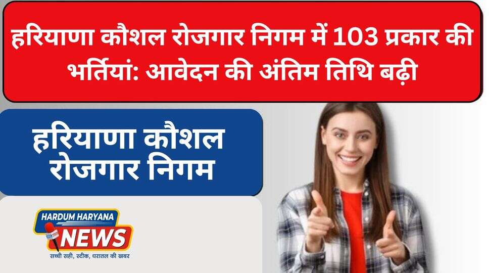 Haryana Government हरियाणा कौशल रोजगार निगम में 103 प्रकार की भर्तियां: आवेदन की अंतिम तिथि बढ़ी