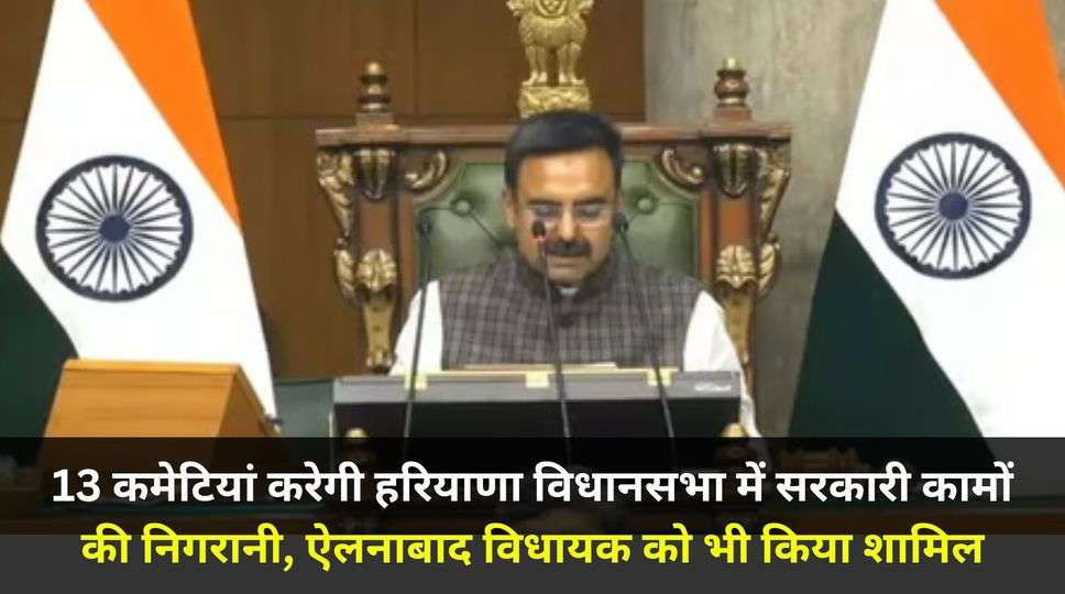 हरियाणा विधानसभा में सरकारी कामों की निगरानी समेत दूसरे कार्यों के लिए 13 कमेटियां गठित कर दी गई हैं। विधानसभा के स्पीकर हरविंद्र कल्याण ने शनिवार रात को इसकी लिस्ट जारी की।
