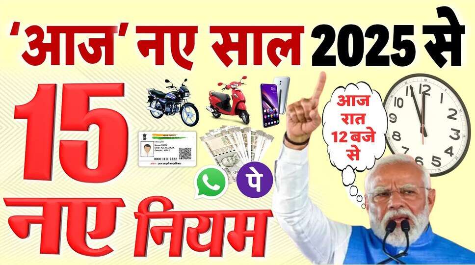 नया साल 2025 कई बड़े बदलावों के साथ शुरू हुआ है। इन नियमों का सबसे अधिक प्रभाव आम जनता, मध्यम वर्ग और किसानों पर पड़ेगा। इन परिवर्तनों से जुड़ी हर नई जानकारी के लिए हमारी वेबसाइट पर जुड़े रहें।