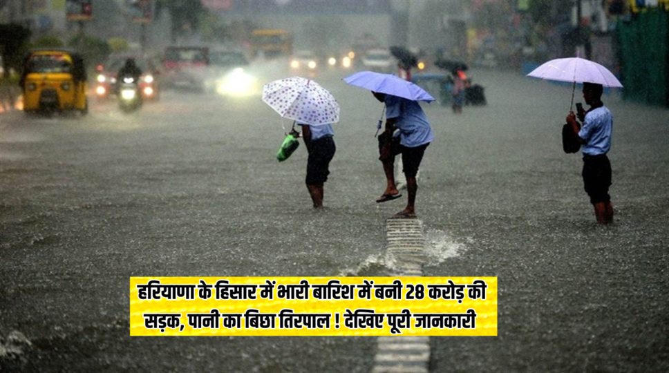 हरियाणा के हिसार में भारी बारिश में बनी 28 करोड़ की सड़क, पानी का बिछा तिरपाल ! देखिए पूरी जानकारी