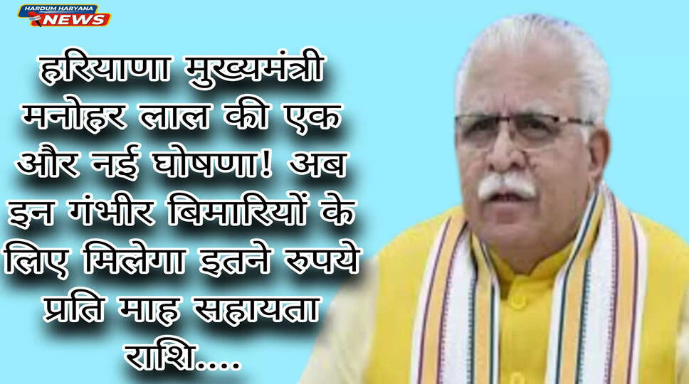 हरियाणा मुख्यमंत्री मनोहर लाल की एक और नई घोषणा! अब इन गंभीर बिमारियों के लिए मिलेगा इतने रुपये प्रति माह सहायता राशि....