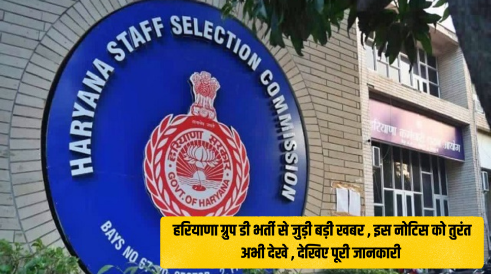 हरियाणा ग्रुप डी भर्ती से जुड़ी बड़ी खबर , इस नोटिस को तुरंत अभी देखे , देखिए पूरी जानकारी