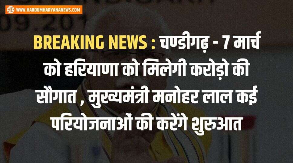 BREAKING NEWS : चण्डीगढ़ - 7 मार्च को हरियाणा को मिलेगी करोड़ो की सौगात , मुख्यमंत्री मनोहर लाल कई परियोजनाओं की करेंगे शुरुआत