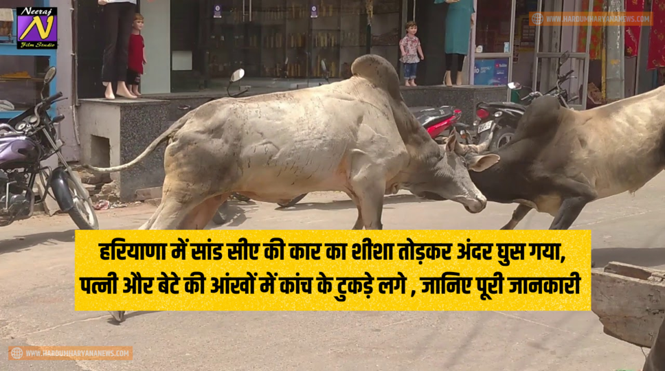 हरियाणा में सांड सीए की कार का शीशा तोड़कर अंदर घुस गया, पत्नी और बेटे की आंखों में कांच के टुकड़े लगे , जानिए पूरी जानकारी