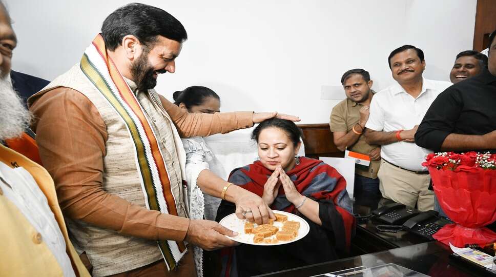नारनौल। हरियाणा की कैबिनेट मंत्री आरती सिंह राव ने शुक्रवार को अपने कार्यालय में कार्यभार संभाला। इस मौके पर प्रदेश के मुख्यमंत्री नायब सिंह सैनी ने उन्हें मिठाई खिलाकर आशीर्वाद दिया। इससे पहले उन्होंने कल ही कैबिनेट मंत्री के तौर पर पद एवं गोपनीयता की शपथ ली थी।