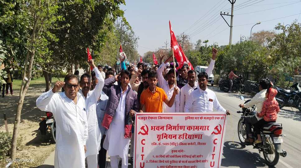 उक्त बात भवन निर्माण कामगार यूनियन के राज्याध्यक्ष सुखबीर सिंह, जिला सचिव काॅमरेड नत्थू राम भारू खेड़ा, सीटू जिला सचिव काॅमरेड विजय ढुकड़ा ने कहा कि प्रदेश भर में 22 लाख निर्माण मजदुर निर्माण के क्षेत्र में काम कर रहे हैं। मगर भाजपा राज में इनकी कोई सुध नही ले रहा है, ना इन मजदुरो को कोई भी सुविधा समय पर मिल रही है। प्रदेश सरकार झुठा प्रचार करके मजदूरों के साथ मजाक कर रही है। भाजपा सरकार ने मजदुरो के बोर्ड मे चार सालो से भाजपा सरकार बोर्ड के पैसों पर कुंडली मारे हुए हैं जो पैसा मजदुरो को देना चाहिये उस पर बेमानी ऑब्जेक्शन लगाकर सुविधाओं से वंचित किया जा रहा है। सरकार ने बोर्ड को भ्र्ष्टाचार का अड्डा बन दिया है। यूनियन ने मुख्यमंत्री-श्रम मंत्री और बोर्ड के अधिकारियों को निर्माण मजदुरो की मांगों व भ्र्ष्टाचार रोकने के बारे में बार बार ज्ञापन दिये गये थे मगर अब तक कोई समाधन नही हुवा है। बल्कि हरियाणा सरकार ने निर्माण मजदुरो को धक्के खाने पर मजबूर किया जा रहा है । फैमेली आईडी की वजय से ना कोई पंजीकरण हो रहा ना सुविधा दी जा रही बल्कि ऑब्जेक्शन लगाकर सुविधा फार्मो को काटा जा रहा है मजदुरो को मिलने वाले लाभ में रुकावट डाली जा रही हैं। दूसरी तरफ से दलालों को अधिकारियों की मिलीभगत से आज बोर्ड भ्र्ष्टाचार का अड्डा बना हुआ है। आम मजदुरो को तीन तीन सालों तक सुविधा नही दी जा रही है बल्कि दलालों के एक दिन पैसे डालने के सैकड़ों मामले सामने आए हैं और सरकार और bocw बोर्ड हाथ पर हाथ धरी बैंठी हुई है। सरकार ना कोई भ्र्ष्टाचार पर रोक लगाना चाहती है। हरियाणा प्रदेश में 22 लाख से ज्यादा निर्माण का मजदूर कारीगर काम करता है । उनके लिए लंबे संघर्षों के बाद 2005 में निर्माण मजदूर कल्याण बोर्ड का गठन किया गया था। 17 साल बीत जाने के बाद भी सभी मजदूर बोर्ड में अभी तक पंजीकृत नहीं हुए हैं। जो सीधे तौर पर राज्य सरकार की कार गुजारी को दर्शाता है जहां एक तरफ प्रदेश सरकार अखबारों में बड़े-बड़े विज्ञापन दे कर यह दावा कर रही हैं की मजदूरों के लिए करोड़ों रुपए राहत के तौर पर दिए गए, जबकि सच्चाई इसके विपरीत है। राहत देने की बजाय हर तरह के हथकंडे अपनाकर प्रदेश की सरकार मजदूरों को मिलने वाले लाभ को रोकने के लिए लगा रही है जिसको लेकर मजदूरों में रोष व्याप्त है।