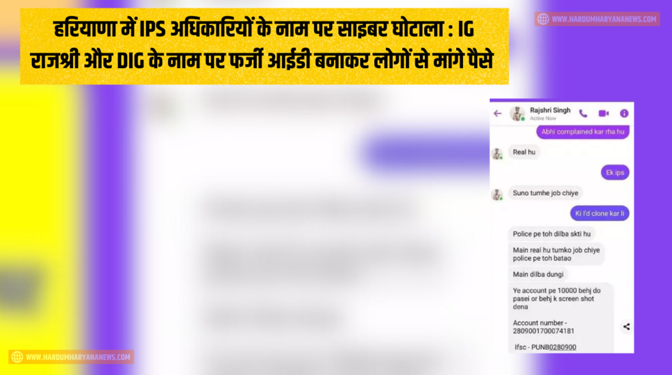 हरियाणा में IPS अधिकारियों के नाम पर साइबर घोटाला : IG राजश्री और DIG के नाम पर फर्जी आईडी बनाकर लोगों से मांगे पैसे , देखिए