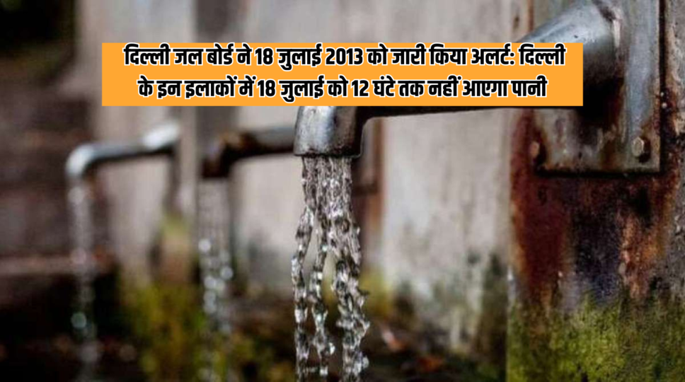 Delhi Jal Board : दिल्ली जल बोर्ड ने 18 जुलाई 2013 को जारी किया अलर्ट: दिल्ली के इन इलाकों में 18 जुलाई को 12 घंटे तक नहीं आएगा पानी
