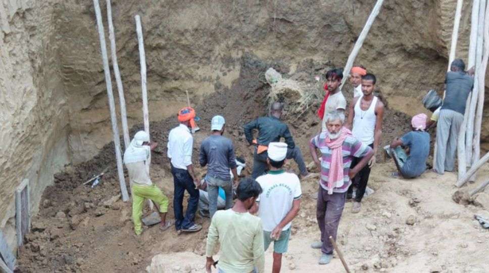 बेसमेंट की खुदाई कर रहे 5 लोग दबे:मिट्टी का बड़ा हिस्सा खिसककर ऊपर आया; व्यक्ति और महिला की हालत गंभीर