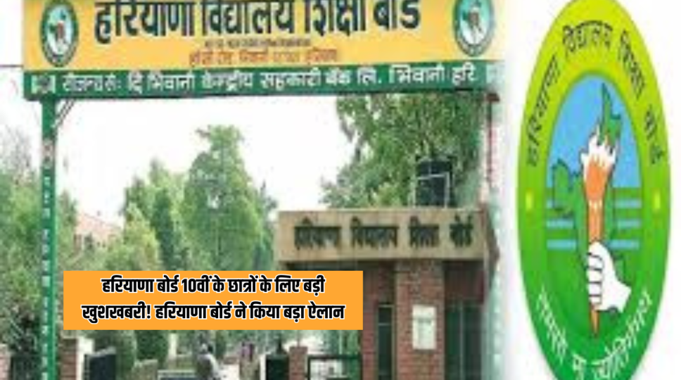 हरियाणा बोर्ड 10वीं के छात्रों के लिए बड़ी खुशखबरी! हरियाणा बोर्ड ने किया बड़ा ऐलान