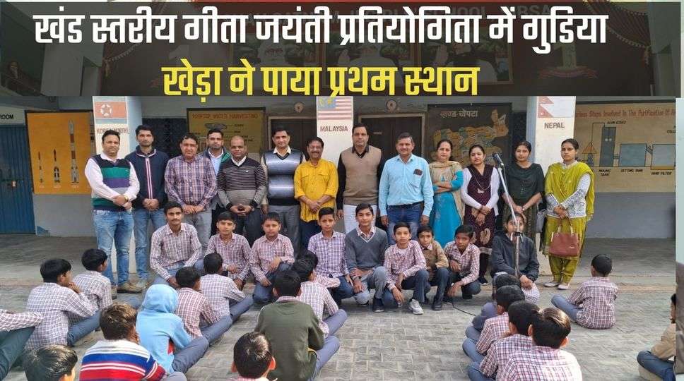 नाथूसरी चोपटा। राजकीय वरिष्ठ माध्यमिक विद्यालय गुडिया खेड़ा के विद्यार्थियों ने खंड स्तरीय गीता जयंती प्रतियोगिता में प्रथम स्थान प्राप्त किया है। कक्षा 9 से 12 वर्ग में अंजू भाषण प्रतियोगिता में वहीं अमित ने श्लोक उच्चारण में प्रथम स्थान प्राप्त किया तथा जतिन ने निबंध प्रतियोगिता में द्वितीय स्थान हासिल किया।