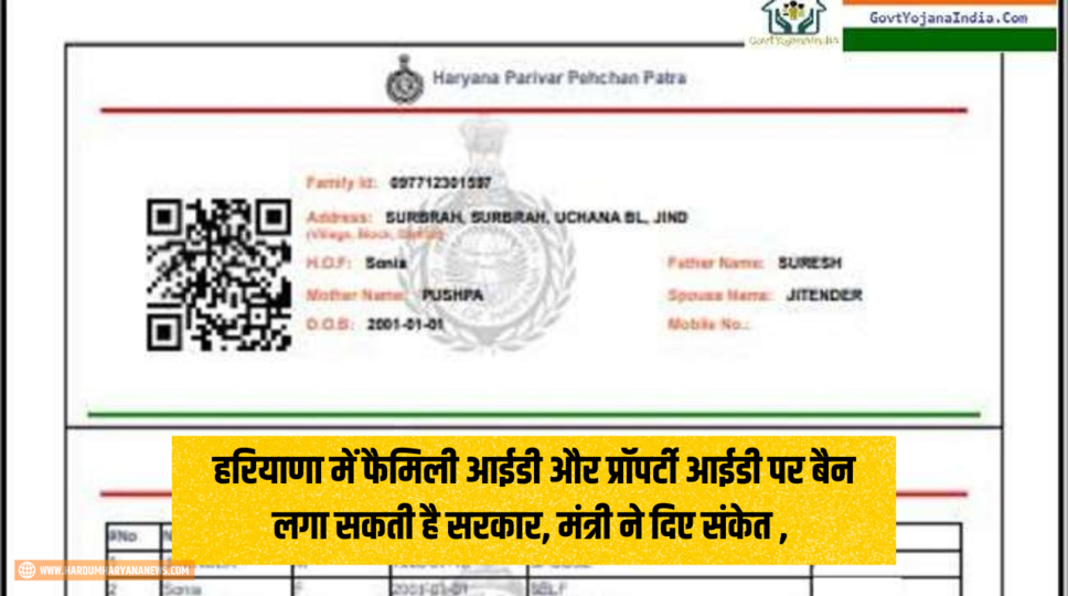 हरियाणा में फैमिली आईडी और प्रॉपर्टी आईडी पर बैन लगा सकती है सरकार, मंत्री ने दिए संकेत , जानिए पूरी जानकारी