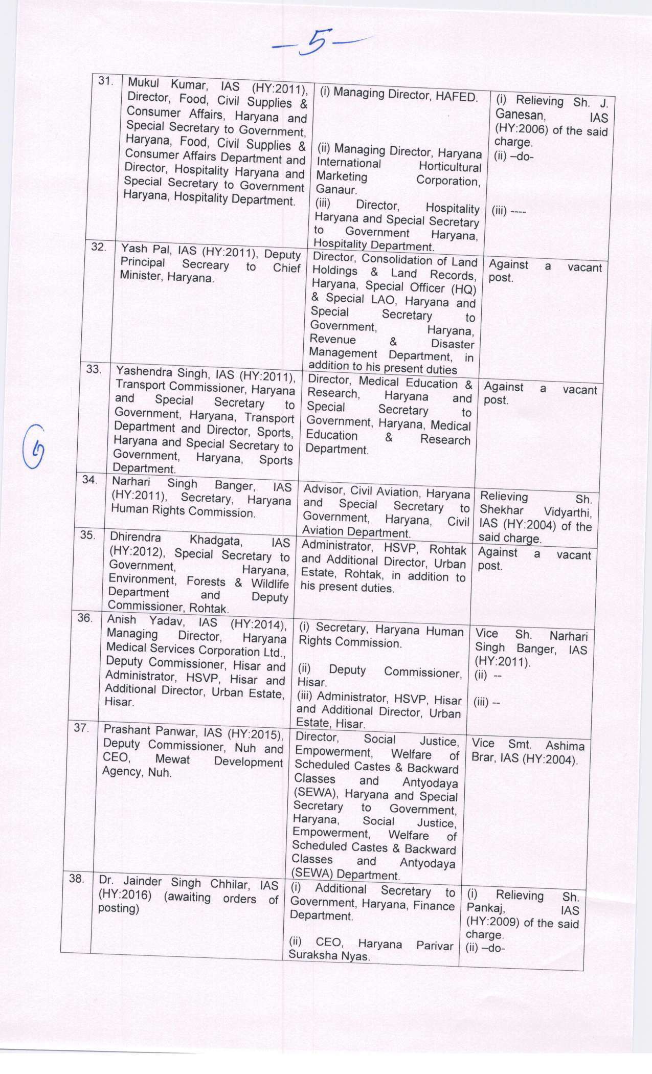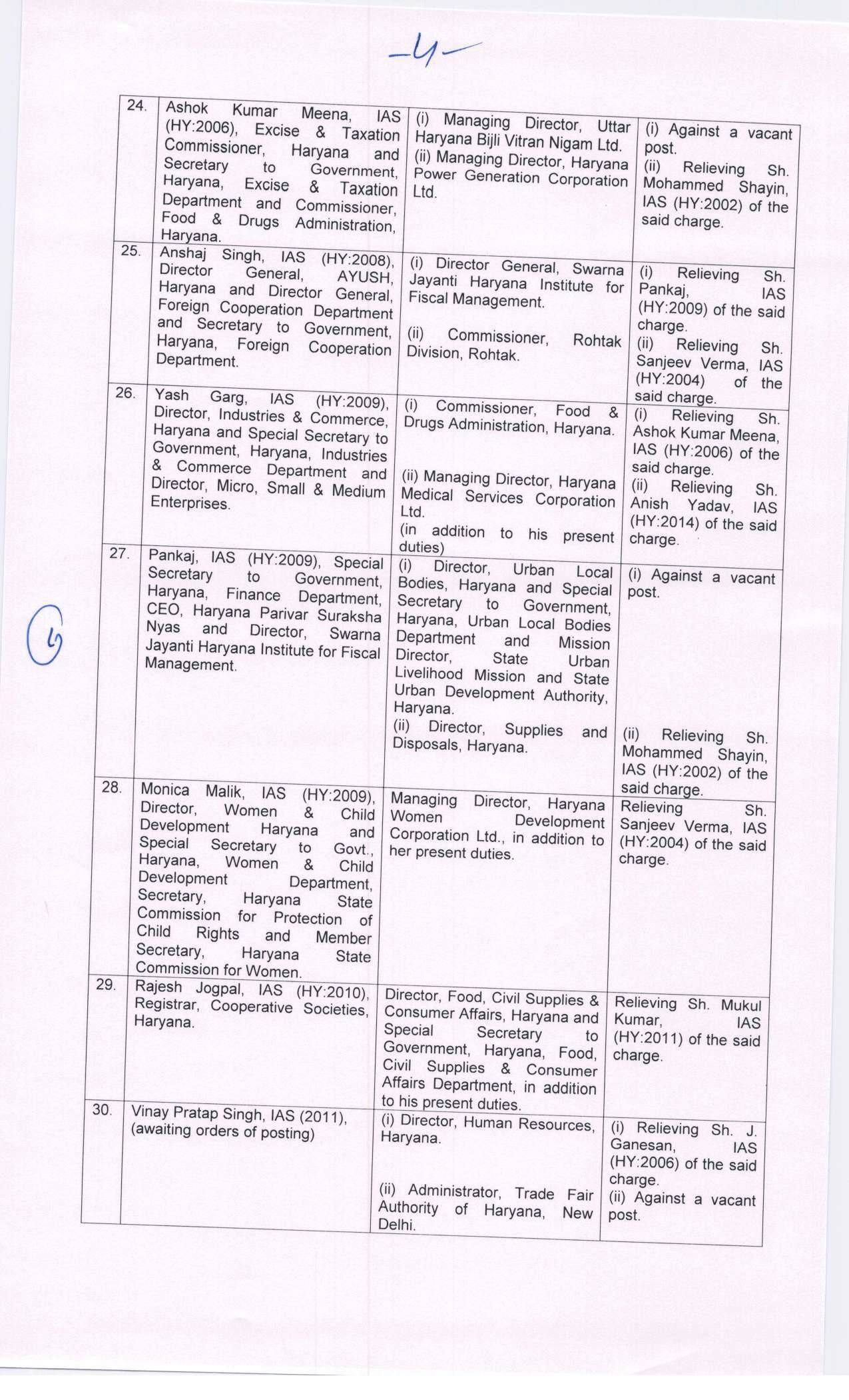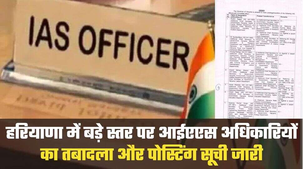 हरियाणा में बड़े स्तर पर आईएएस अधिकारियों का तबादला और पोस्टिंग सूची जारी