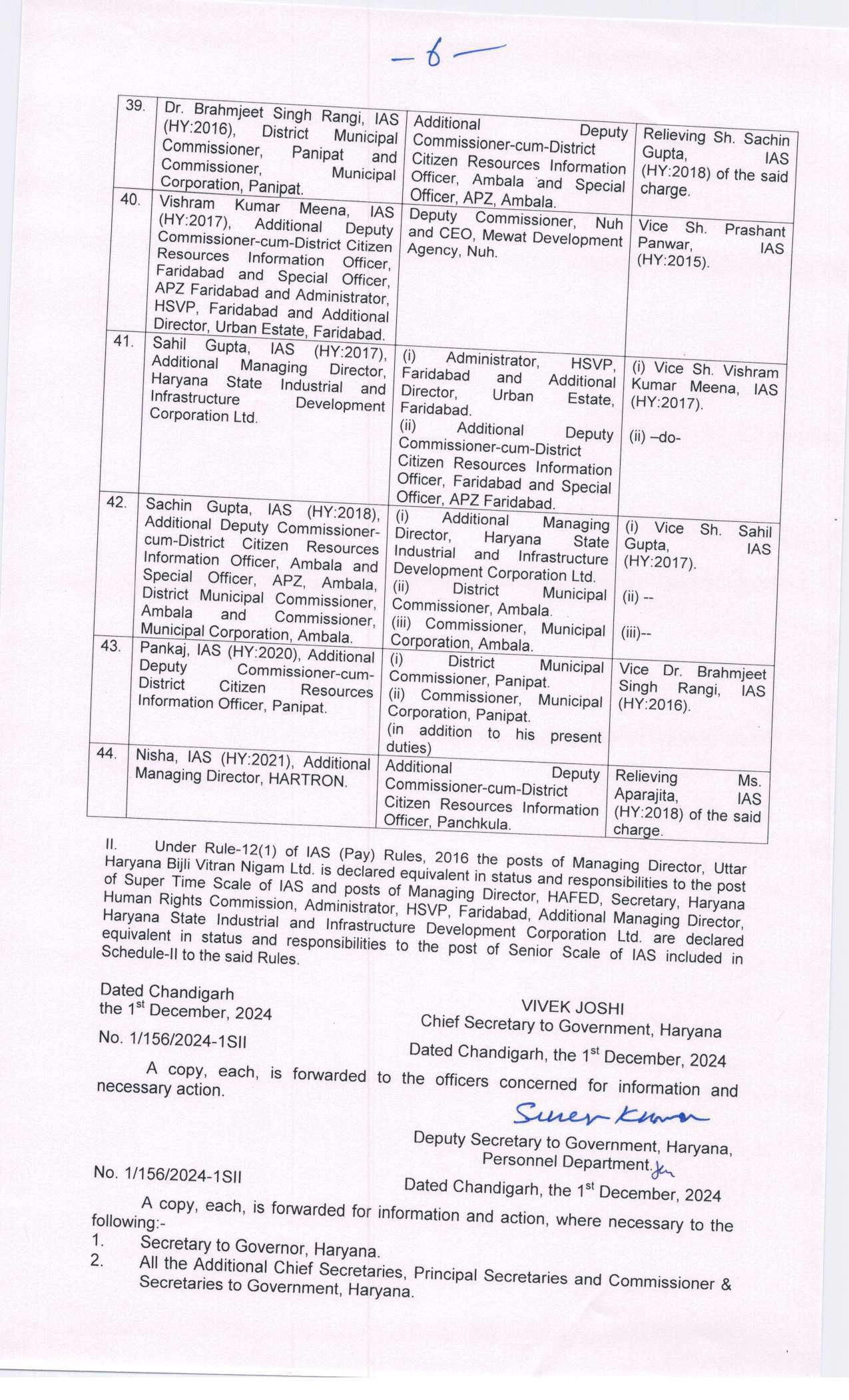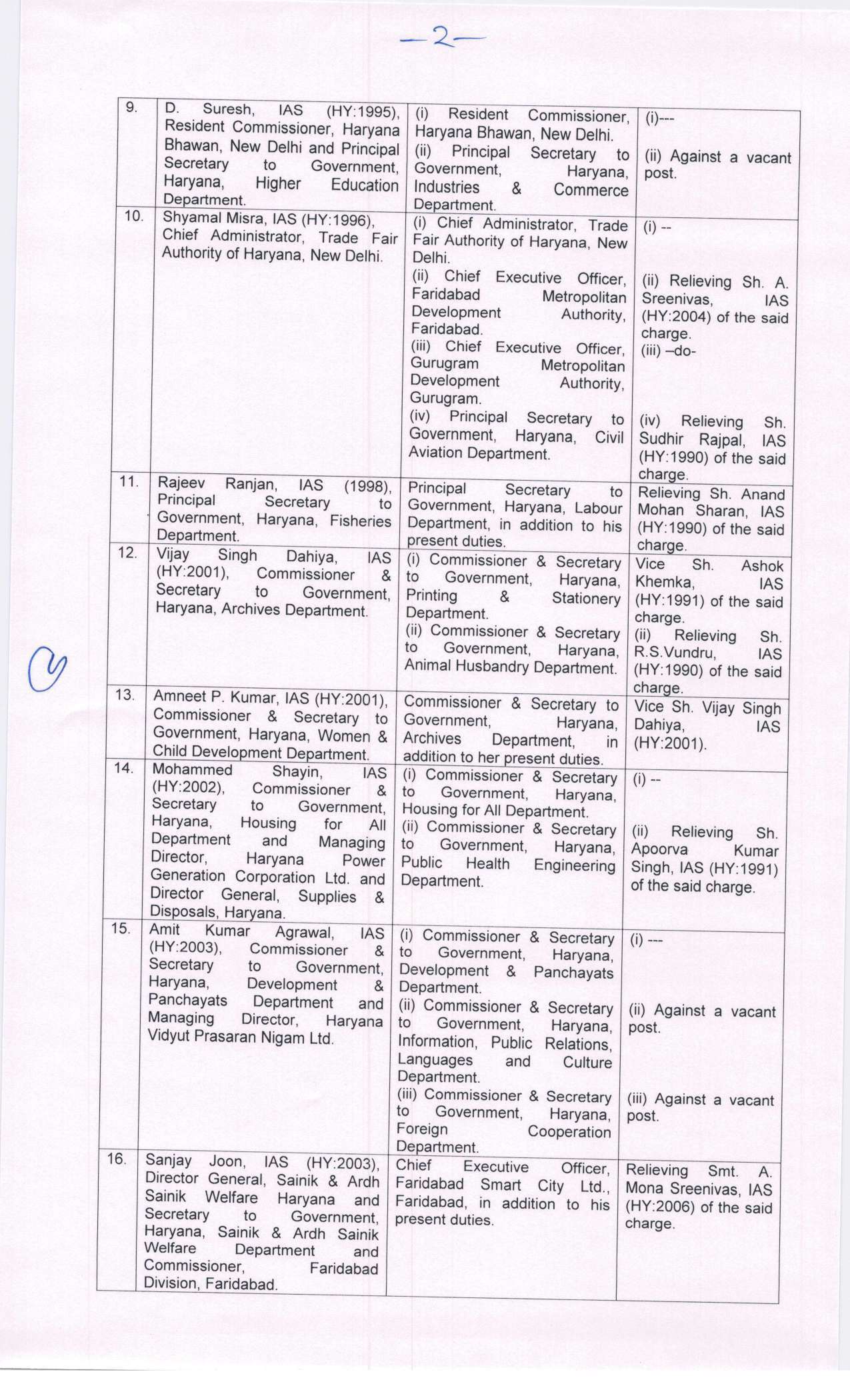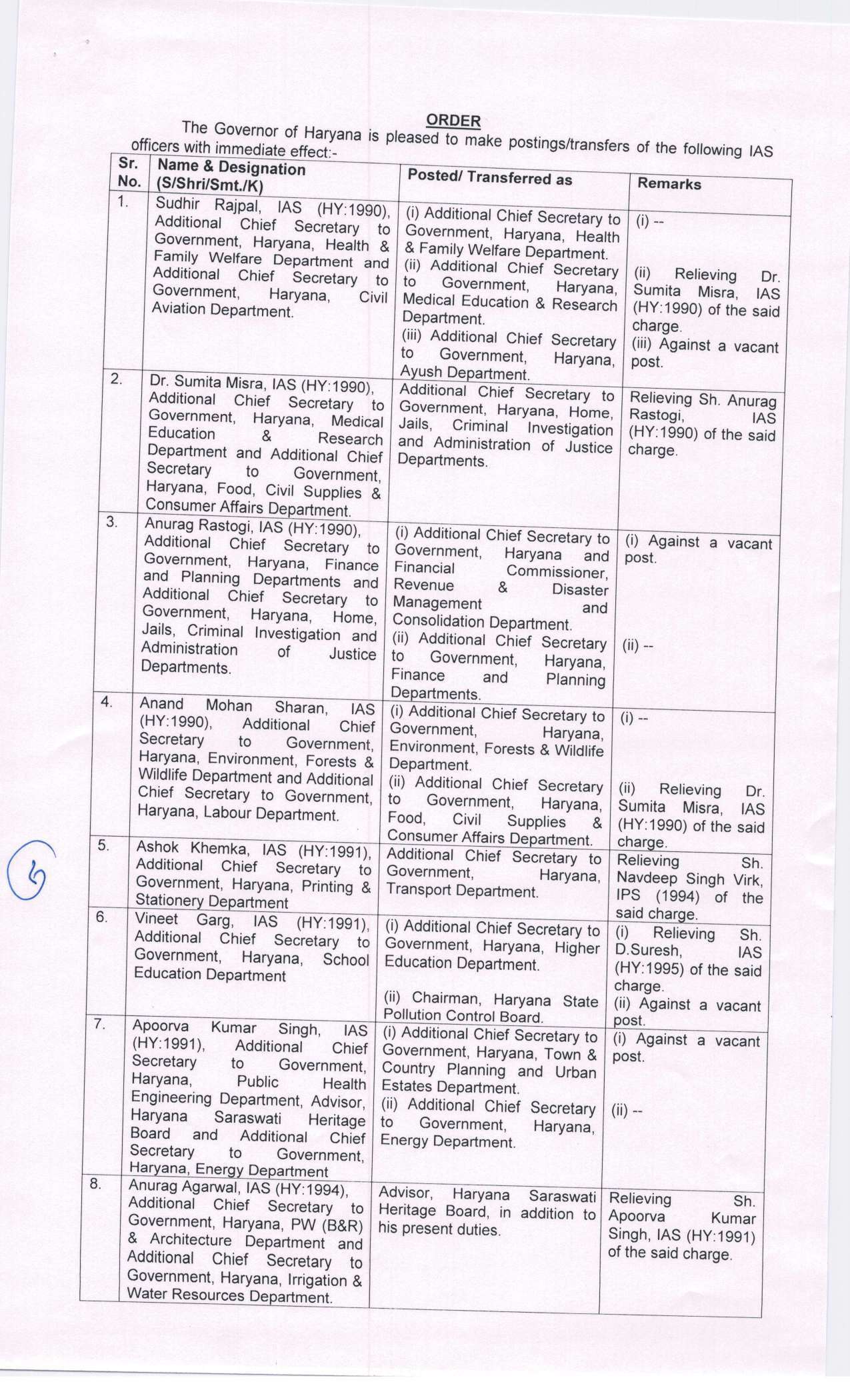 हरियाणा में बड़े स्तर पर आईएएस अधिकारियों का तबादला और पोस्टिंग सूची जारी