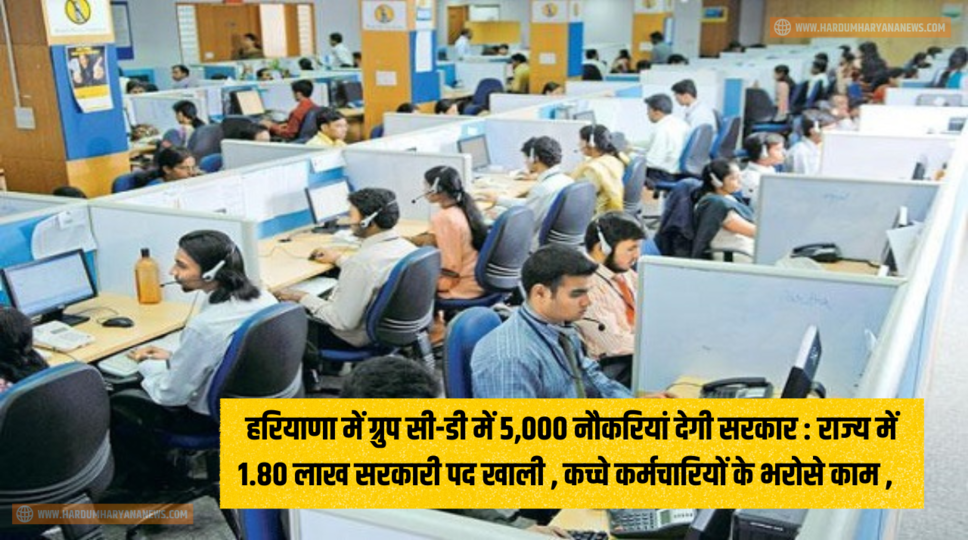 हरियाणा में ग्रुप सी-डी में 5,000 नौकरियां देगी सरकार : राज्य में 1.80 लाख सरकारी पद खाली , कच्चे कर्मचारियों के भरोसे काम , देखिए पूरा मामला