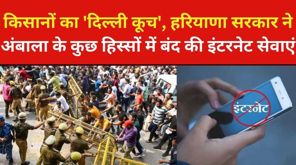 किसानों का 'दिल्ली कूच', हरियाणा सरकार ने अंबाला के कुछ हिस्सों में बंद की इंटरनेट सेवाएं
