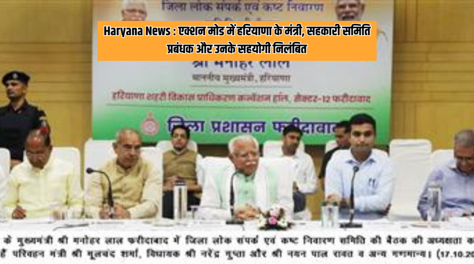 Haryana News : एक्शन मोड में हरियाणा के मंत्री, सहकारी समिति प्रबंधक और उनके सहयोगी निलंबित