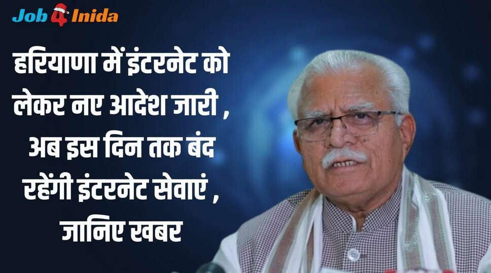 Haryana Update : हरियाणा में इंटरनेट को लेकर नए आदेश जारी , अब इस दिन तक बंद रहेंगी इंटरनेट सेवाएं , जानिए खबर