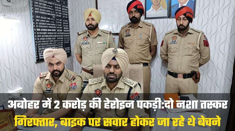 अबोहर में 2 करोड़ की हेरोइन पकड़ी:दो नशा तस्कर गिरफ्तार, बाइक पर सवार होकर जा रहे थे बेचने