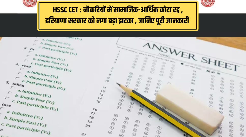 HSSC CET : नौकरियों में सामाजिक-आर्थिक कोटा रद्द , हरियाणा सरकार को लगा बड़ा झटका , जानिए पूरी जानकारी
