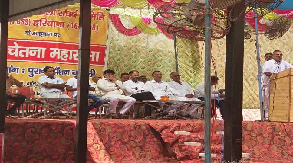 पेंशन बहाली संघर्ष समिति की गांव माधोसिंघाना व खारिया में आयोजित जनसभा में उमड़ी भीड़