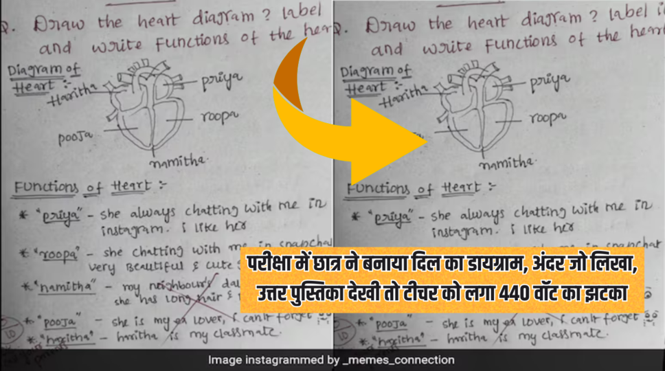 परीक्षा में छात्र ने बनाया दिल का डायग्राम, अंदर जो लिखा, उत्तर पुस्तिका देखी तो टीचर को लगा 440 वॉट का झटका