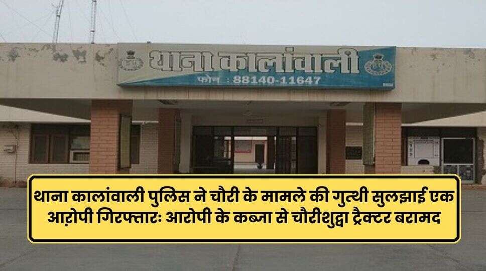 डबवाली अप्रैल 14 पुलिस अधीक्षक डबवाली के दिशानिर्देशानुसार व उप पुलिस अधीक्षक कालांवाली श्री राजीव कुमार के नेतृत्व में क्षेत्र में हो रही चोरीयों पर अकुशं लगाने के विशेष अभियान के तहत कार्यवाही करते हुए थाना कालांवाली पुलिस द्वारा चौरी के एक मामले की गुथी सुल्झाने में सफलता हासिल की है । चौरी के मामले में एक आरोपी को गिरफ्तार कर आरोपी के कब्जा से चोरी किया गया एक ट्रैक्टर को बरामद करने में सफलता हासिल की है ।
