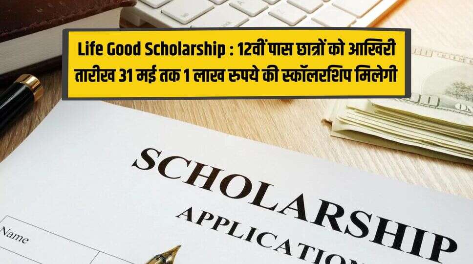 लाइफ गुड स्कॉलरशिप की समय सीमा 31 मई तक बढ़ा दी गई है। इस योजना के तहत 12वीं पास छात्रों को 1 लाख रुपये की स्कॉलरशिप दी जाएगी।