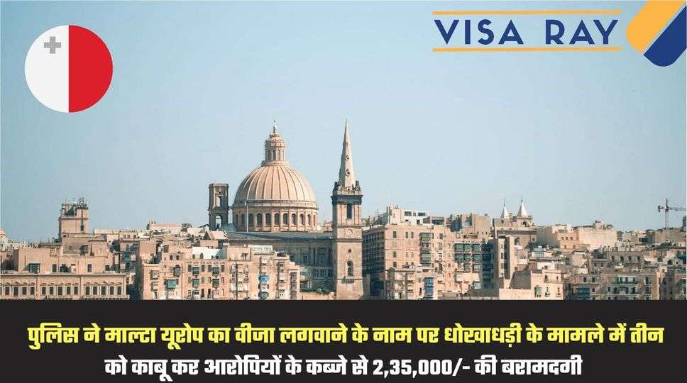 पुलिस ने माल्टा यूरोप का वीजा लगवाने के नाम पर धोखाधड़ी के मामले में तीन को काबू कर आरोपियों के कब्जे से 2,35,000/- की बरामदगी