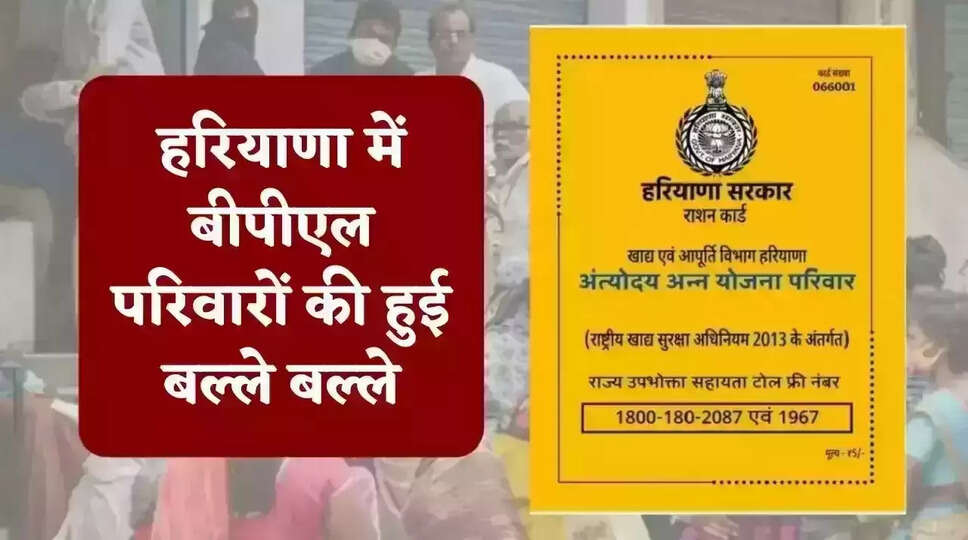 हरियाणा में बीपीएल कार्ड धारकों के लिए राहत की खबर सामने आई है।