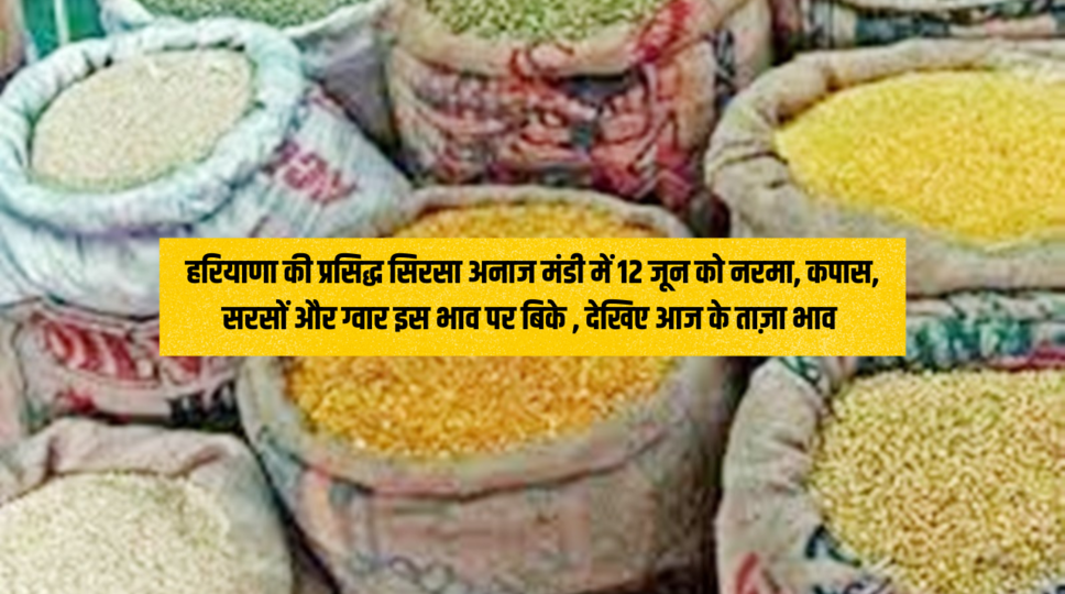 हरियाणा की प्रसिद्ध सिरसा अनाज मंडी में 12 जून को नरमा, कपास, सरसों और ग्वार इस भाव पर बिके , देखिए आज के ताज़ा भाव