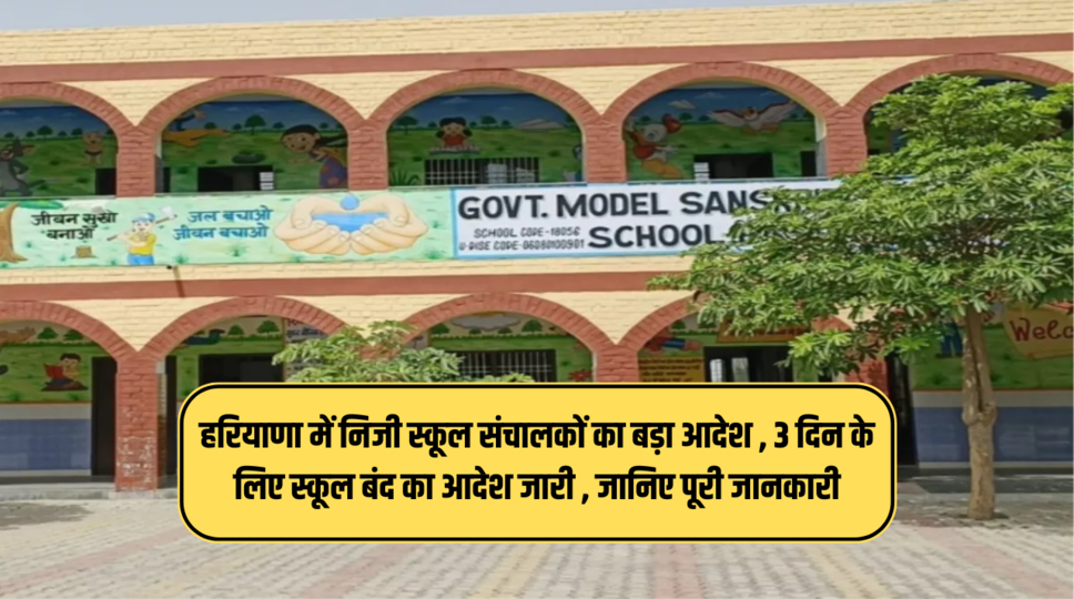 हरियाणा में निजी स्कूल संचालकों का बड़ा आदेश , 3 दिन के लिए स्कूल बंद का आदेश जारी , जानिए पूरी जानकारी