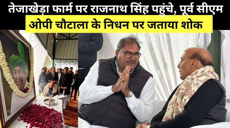 तेजाखेड़ा फार्म पर राजनाथ सिंह पहुंचे, पूर्व सीएम ओपी चौटाला के निधन पर जताया शोक