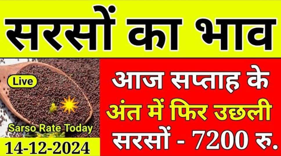 सरसों के भाव में आज बड़ा सुधार देखने को मिला है। अलग-अलग मंडियों में सरसों की कीमतों में उतार-चढ़ाव जारी है। आइए जानते हैं 14 दिसंबर 2024, शनिवार के ताजा सरसों के मंडी भाव।