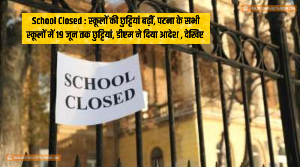 School Closed : स्कूलों की छुट्टियां बढ़ीं, पटना के सभी स्कूलों में 19 जून तक छुट्टियां, डीएम ने दिया आदेश , देखिए