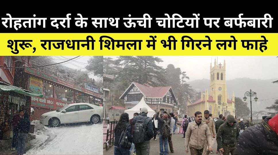 रोहतांग दर्रा के साथ ऊंची चोटियों पर बर्फबारी शुरू, राजधानी शिमला में भी गिरने लगे फाहे