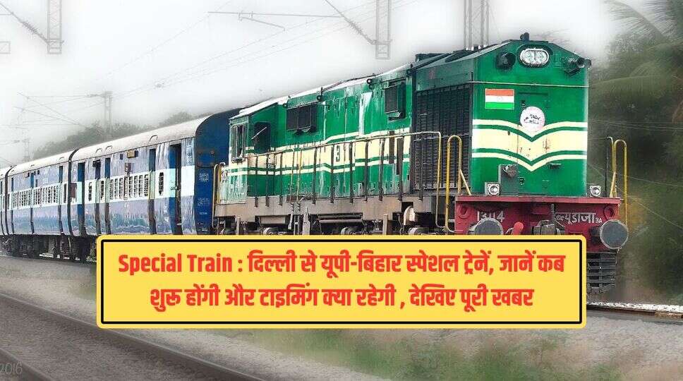 Special Train : दिल्ली से यूपी-बिहार स्पेशल ट्रेनें, जानें कब शुरू होंगी और टाइमिंग क्या रहेगी , देखिए पूरी खबर