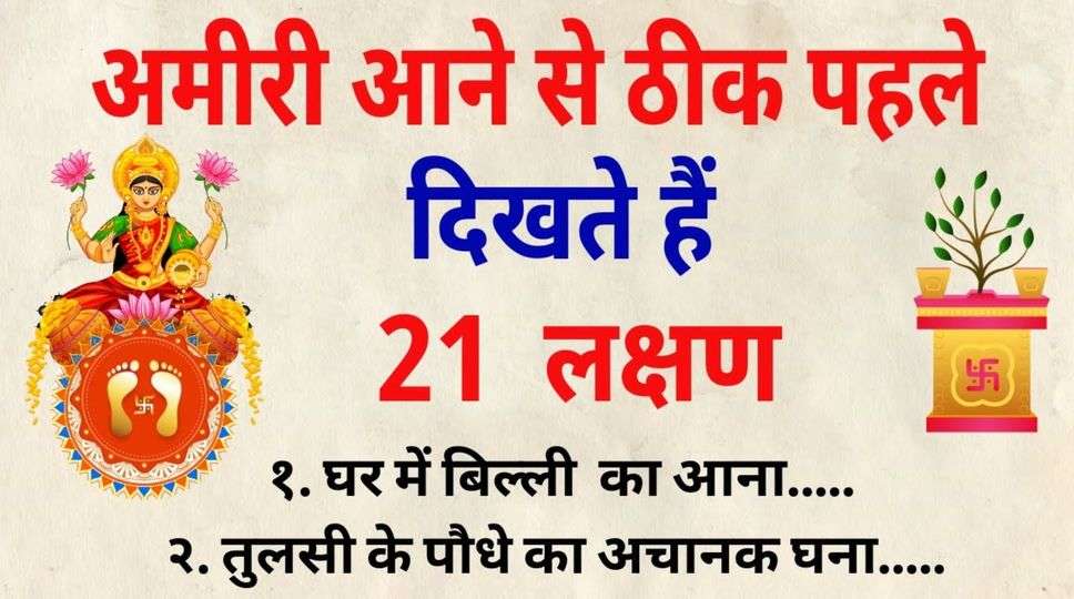 वास्तुशास्त्र और ज्योतिष शास्त्र के अनुसार, जब किसी व्यक्ति के जीवन में आर्थिक समृद्धि आने वाली होती है, तो प्रकृति पहले से ही कुछ शुभ संकेत देती है। ये संकेत अमीरी के आगमन का इशारा करते हैं। आइए जानते हैं इन महत्वपूर्ण संकेतों के बारे में जो बताते हैं कि आपके जीवन में सुख, समृद्धि, और धन का आगमन होने वाला है।
