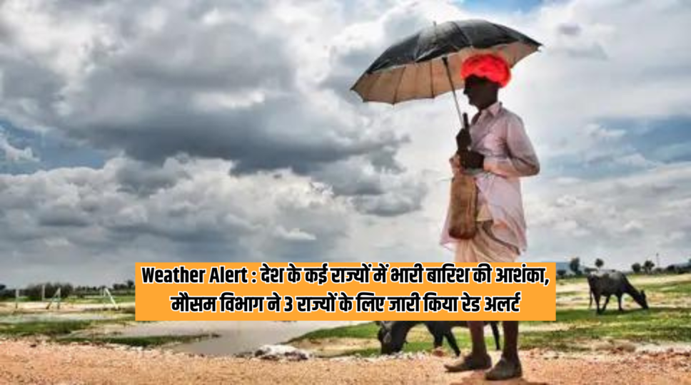 Weather Alert : देश के कई राज्यों में भारी बारिश की आशंका, मौसम विभाग ने 3 राज्यों के लिए जारी किया रेड अलर्ट
